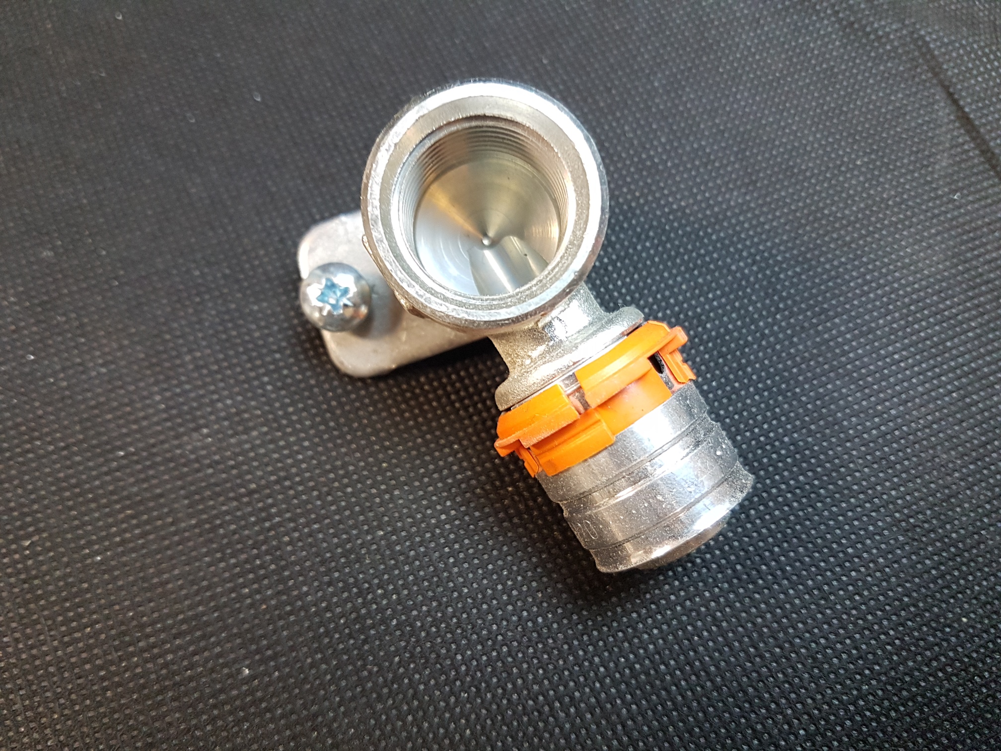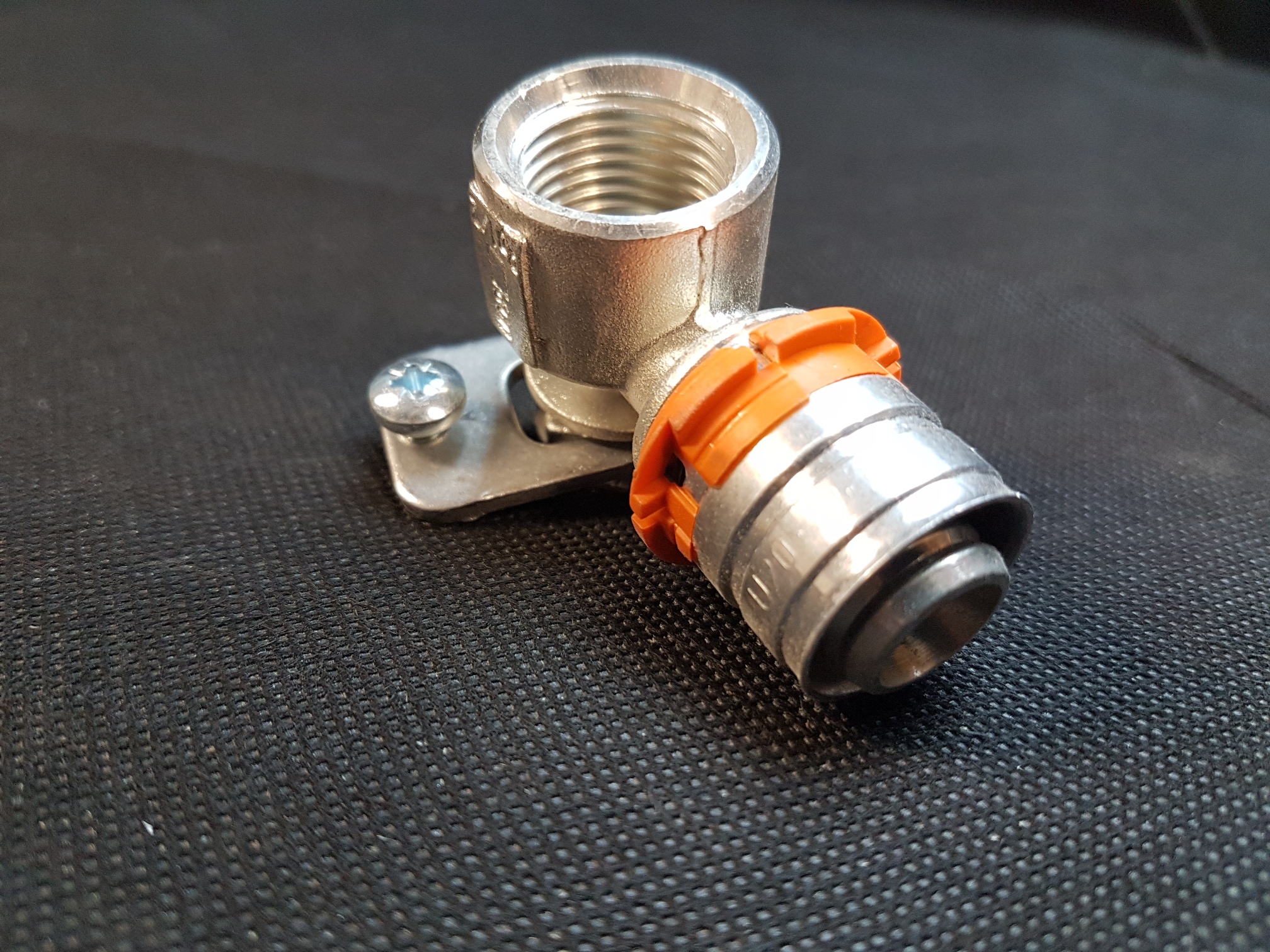- aus Messing verzinnt, zur verdrehsicheren Befestigung an den Uponor Montagewinkeln und Montageplatten mittels Fixierelement.